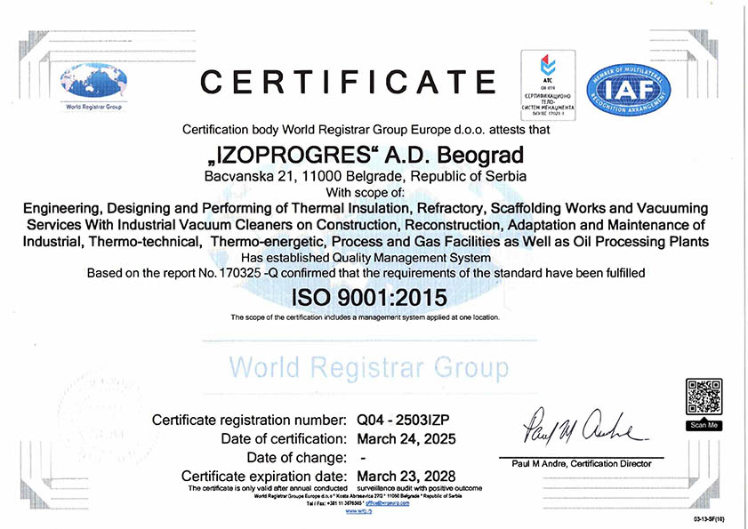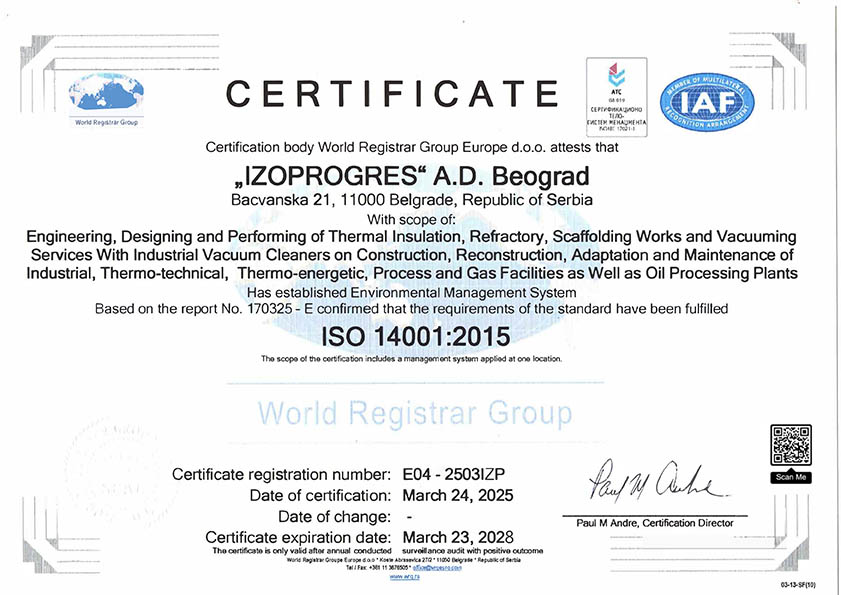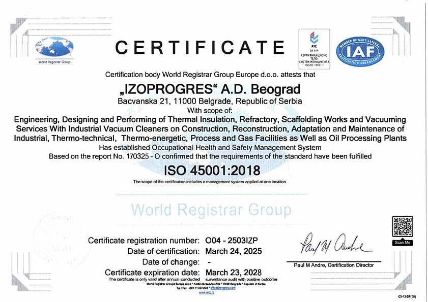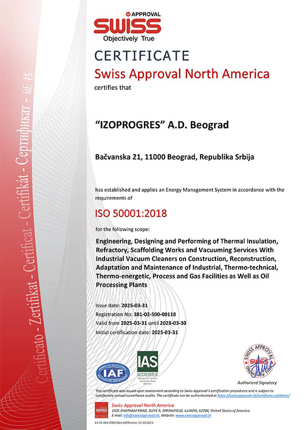 Izoprogres AD Beograd primenjuje sveobuhvatan pristup upravljanju, usklađen sa najvažnijim međunarodnim standardima. Naš integrisani sistem osigurava vrhunsku kontrolu kvaliteta, bezbednost informacija i odgovoran odnos prema životnoj sredini i energiji.